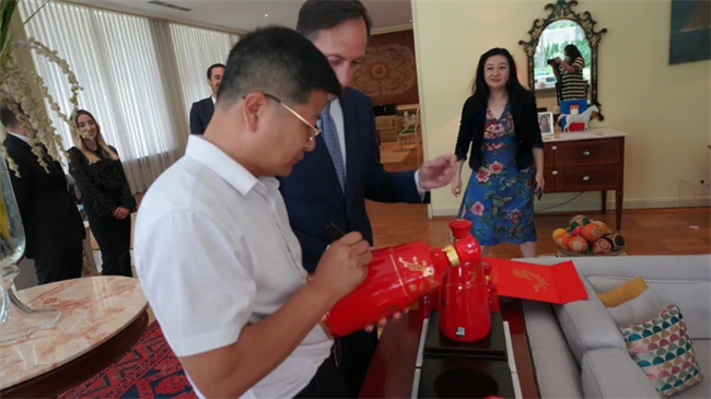 6月27-30日,由陜西西鳳酒股份有限公司主辦的“鳳香彌久傳遞友誼,合志同方共話(huà)未來(lái)——紅西鳳走進(jìn)大使館”系列活動(dòng)在京成功開(kāi)展。6月28日下午,陜西西鳳酒股份有限公司副總經(jīng)理高洪濤一行抵達(dá)葡萄牙駐華大使官邸,與葡萄牙駐華大使杜傲杰進(jìn)行了深入的溝通交流,積極尋找文化共通點(diǎn),加速推動(dòng)中國(guó)白酒國(guó)際化。高洪濤與在場(chǎng)嘉賓分享西鳳酒所蘊(yùn)含的歲月沉淀、醇香典雅的悠久文化,分享西鳳品牌發(fā)展過(guò)程中的動(dòng)人故事。陜西西鳳酒股份有限公司品牌管理部部長(zhǎng)姜承輝及隨行人員參加了此次活動(dòng)。