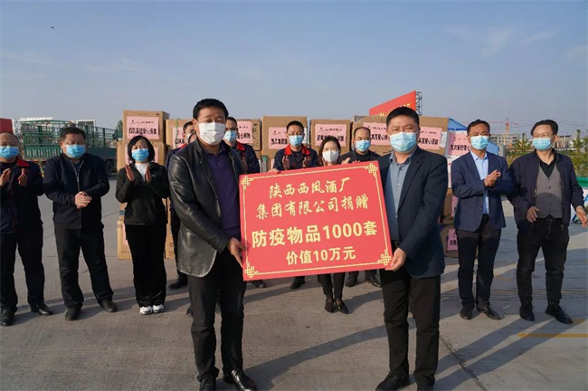 儀式上,西鳳集團(tuán)公司向鳳翔區(qū)新冠疫情工作領(lǐng)導(dǎo)小組捐贈(zèng)了價(jià)值10萬元的防疫物資1000套。