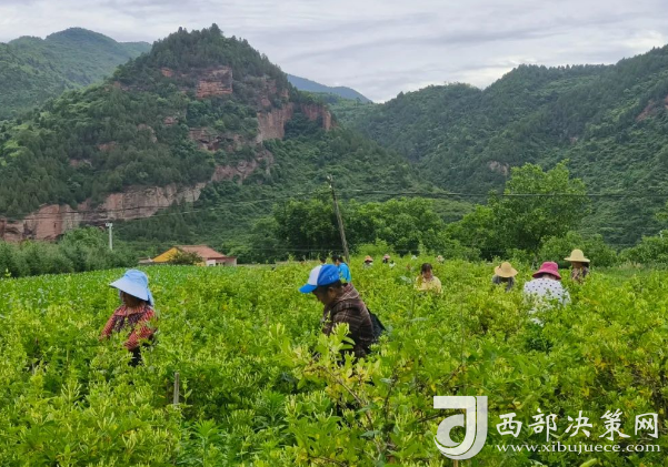 西部決策網(wǎng)訊(記者帥華鋒 通訊員 羅寧)六月,走進(jìn)隴南兩當(dāng)楊店鎮(zhèn)豆家坪村的金銀花種植基地,花香四溢,一簇簇、一片片掩口含羞、花蕊四射的金銀花,流淌在楊店的青山綠水之間,把這里點綴得如詩如畫。故道大地到處洋溢著豐收的喜悅,奏響了金銀花首茬采摘的“豐收曲”。