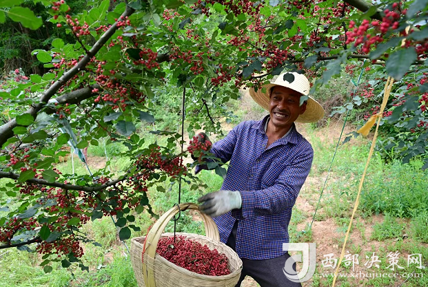 西部決策網(wǎng)訊(記者帥華鋒 通訊員 余小芹 李三良)七月的吳郁故里,椒紅似火,椒香四溢。沿著蜿蜒曲折的山路,星羅棋布、層次有序的花椒園將整個(gè)大山分成若干大小不一的方塊,像是山的孩子,又像是孩子手中的寶物?;鸺t的花椒映紅了群眾的笑臉,在當(dāng)?shù)厝罕娦闹?,花椒有了一個(gè)名符其實(shí)的別名——“搖錢樹”。