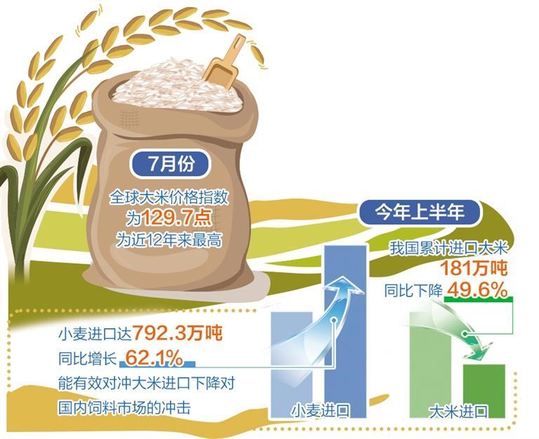 “為了確保大米進口穩(wěn)定性,我國各類進口主體也在推進大米進口多元化,避免來源地和品種過于集中帶來的進口安全風險。”彭超說。一方面,推進大米進口來源地多元化。我國大米進口來源地包括越南、緬甸、泰國、印度、巴基斯坦、柬埔寨等主產(chǎn)國。從去年10月起,我國開始逐步減少印度碎米進口,印度已從過去幾年中國最大的大米供應商滑落至第四位。另一方面,推進糧食進口品種多元化。減少大米進口的同時,增加飼用小麥進口。今年上半年,我國小麥進口量達到792.3萬噸,較去年同期增長62.1%,能夠有效對沖大米進口下降對國內(nèi)飼料市場的沖擊。