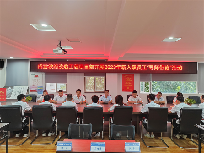 8月25日下午,中鐵一局七公司成渝項目部舉行導師帶徒結(jié)對儀式,項目領(lǐng)導班子、各部室負責人及主要管理人員出席活動(重點對象為新入職大學生),支部書記王濤主持儀式。