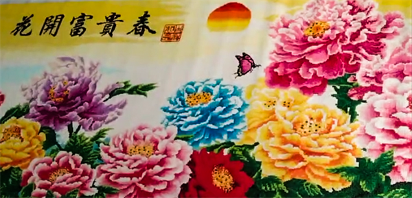 去年下半年,楊波萌生了做一件十字繡工藝品的想法。他便在網(wǎng)上購買了所需的各色水鉆36萬8千8百顆以及粘和劑、細吸管等工具。1顆水鉆約2毫米,相當于小米粒大小。業(yè)余時間,楊波就用小細管吸住水鉆沾上專用膠填入到畫好的網(wǎng)格內,按照網(wǎng)格的顏色、形狀,一顆一顆地填入。經過51天的專心致志,一件《花開富貴春》十字繡作品出世了。楊波說:“做這件十字繡需要耐心、細心和專心,也考驗恒心。做好后寄到老家,老婆看后夸道‘厲害!也挺有耐心’。”