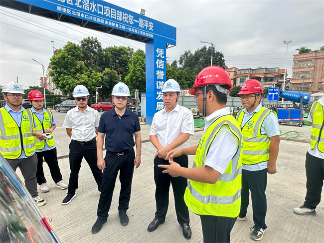 在順德區(qū)北滘水口片區(qū)園區(qū)設(shè)施配套工程一標段項目施工現(xiàn)場,張敏聽取了項目負責人關(guān)于項目安全、質(zhì)量、進度及人員配置等方面情況匯報,并針對項目實際提出三點要求:一要緊抓施工黃金時期,合理安排各項資源,加快推進施工進度;二要加強與設(shè)計單位的溝通,優(yōu)化設(shè)計方案與變更,實現(xiàn)項目創(chuàng)效;三要持續(xù)跟進業(yè)主回款,保證項目資金連續(xù)穩(wěn)定。