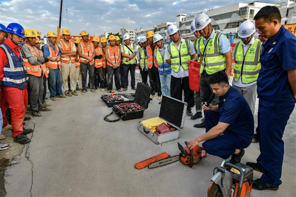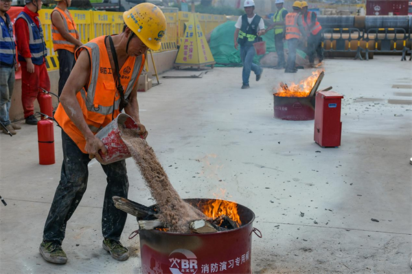 11月9日是第32個全國消防日。這次消防演練模擬火災(zāi)發(fā)生后如何使用干粉滅火器、干沙滅火,生活區(qū)宿舍起火員工俯身毛巾捂住口鼻逃生、昏迷受傷員工的轉(zhuǎn)移救治,以及消防救援機構(gòu)的介入救援等方面進行演練。項目監(jiān)理單位點評時認為,此次演練基本上是按照實景進行的,進一步增強了項目的應(yīng)急應(yīng)變、團隊協(xié)調(diào)和處置保障能力,為應(yīng)對突發(fā)事件積累寶貴經(jīng)驗,保證安全生產(chǎn)工作全面落實。