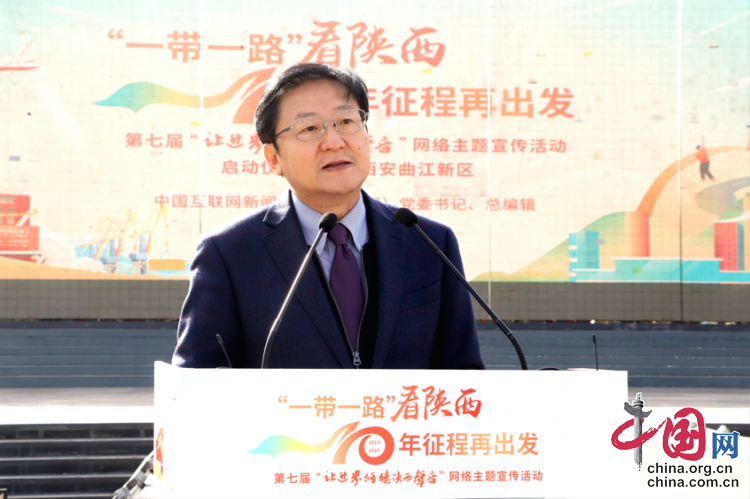 王曉輝致辭時(shí)介紹,作為國家重點(diǎn)新聞網(wǎng)站,長期以來,中國網(wǎng)致力于關(guān)注西部、尤其是關(guān)注陜西各個(gè)領(lǐng)域的高質(zhì)量發(fā)展。2017年,在陜西省委網(wǎng)信辦的大力支持下,中國網(wǎng)以“絲路中國”頻道為主體策劃推出了“讓世界傾聽陜西聲音”網(wǎng)絡(luò)主題宣傳活動(dòng),已經(jīng)連續(xù)成功舉辦了六屆,到今年已經(jīng)是第七屆。今年時(shí)值共建“一帶一路”倡議提出十周年,在曲江新區(qū)開元廣場,站在大唐不夜城這個(gè)名動(dòng)海內(nèi)外的“網(wǎng)紅”打卡地,感受絲路起點(diǎn)文旅融合生機(jī)勃勃的新活力,以“‘一帶一路’的陜西十年”主題,一起啟動(dòng)第七屆“讓世界傾聽陜西聲音”網(wǎng)絡(luò)主題宣傳活動(dòng),更覺意義重大。他表示,此次活動(dòng),中國網(wǎng)也將拿出最優(yōu)質(zhì)的傳播資源和傳播力量,充分整合中省主流媒體資源,全方位、多角度、立體式講述陜西省在共建“一帶一路”大格局中高質(zhì)量發(fā)展的生動(dòng)實(shí)踐和典型故事,向世界傳遞陜西好聲音。
