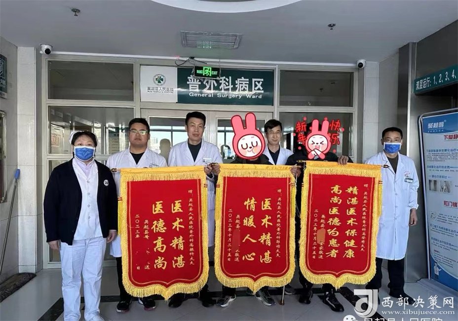 西部決策網(wǎng)訊 (記者劉玉 齊春梅 通訊員 師寶康)日前,三面火紅的錦旗送到延安吳起縣人民醫(yī)院普外科:“醫(yī)術(shù)精湛 醫(yī)德高尚”、“醫(yī)術(shù)精湛 情暖人心”、“精湛醫(yī)術(shù)保健康 高尚醫(yī)德為患者”。