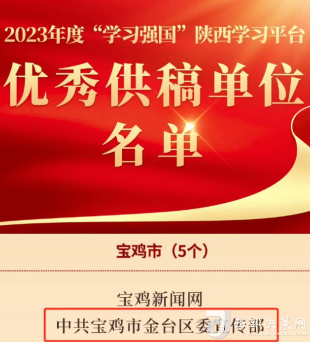西部決策網(wǎng)訊(記者帥華鋒 通訊員 徐紅娟)近日,在“學習強國”陜西學習平臺2023年度管理員通訊員培訓會上,中共寶雞市金臺區(qū)委宣傳部被授予“優(yōu)秀供稿單位”榮譽稱號,成為寶雞僅有的5個受表彰供稿單位之一。