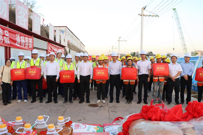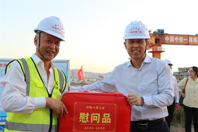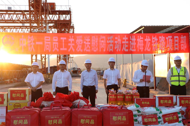年終歲寒,元旦將至。為深入貫徹落實(shí)黨的二十大和中國(guó)工會(huì)十八大精神,把黨的關(guān)懷和公司工會(huì)的溫暖及時(shí)送到廣大職工群眾的心坎上。12月11日下午,中鐵一局“員工關(guān)愛(ài)送慰問(wèn)”活動(dòng)走進(jìn)中鐵一局梅龍鐵路項(xiàng)目施工現(xiàn)場(chǎng)。中鐵一局黨委副書(shū)記、工會(huì)主席王新年,一公司總經(jīng)理韓勝,副總經(jīng)理、工會(huì)主席應(yīng)曉峰等共同為項(xiàng)目一線(xiàn)參建職工送去暖心關(guān)愛(ài)。