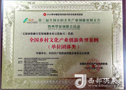 西部決策網訊(張隴峰 通訊員 張建英)12月8日,2023年中國農民豐收節(jié)“第三屆全國鄉(xiāng)村文化產業(yè)創(chuàng)新發(fā)展大會暨典型案例推介活動”在江蘇靖江舉辦。寶雞市隴縣縣委宣傳部選送的“文旅商體融合發(fā)展 助推鄉(xiāng)村文化振興”案例榮獲第三屆全國鄉(xiāng)村文化產業(yè)創(chuàng)新發(fā)展單位團體類典型案例,系全市唯一。