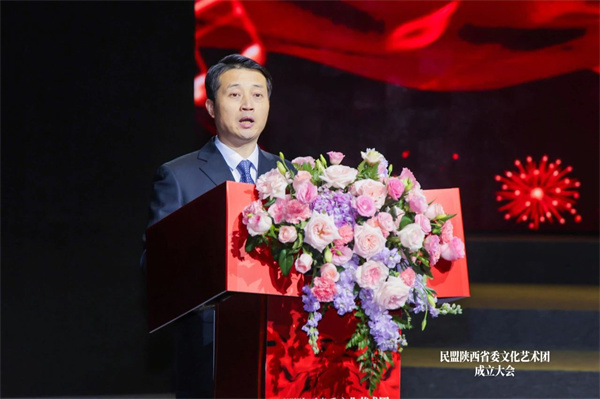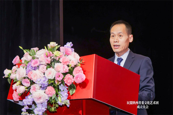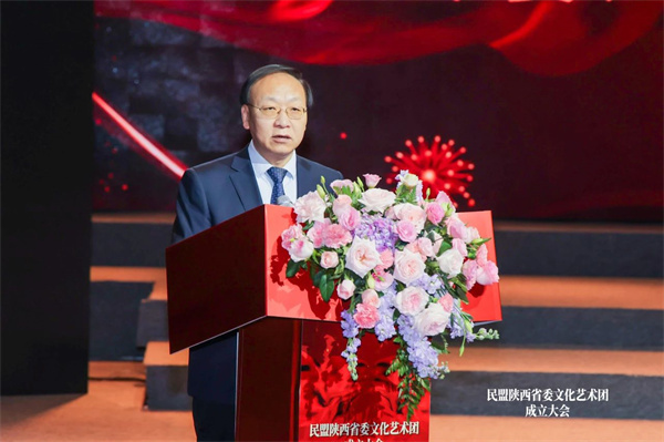 虞浩桂在致辭中對民盟陜西省委文化藝術(shù)團(tuán)的成立表示祝賀。他指出,在全省上下深入學(xué)習(xí)貫徹習(xí)近平文化思想,不斷開創(chuàng)新時代文化工作新局面的關(guān)鍵時期,民盟陜西省委文化藝術(shù)團(tuán)的成立正當(dāng)其時、意義重大。希望民盟陜西省委文化藝術(shù)團(tuán)扎根本土、深植時代,引領(lǐng)和帶動廣大文藝工作者創(chuàng)作出更多高水準(zhǔn)、影響大的文藝精品,大力講好“中國故事”“陜西故事”“多黨合作故事”,為我省文藝事業(yè)高質(zhì)量發(fā)展注入澎湃動力和生機(jī)活力,為建設(shè)陜西文化強(qiáng)省貢獻(xiàn)更多的智慧和力量。