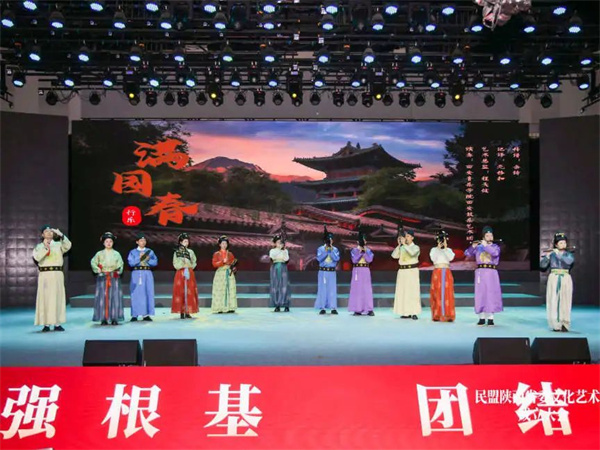成立儀式結(jié)束后,民盟陜西省委文化藝術(shù)團(tuán)理事們?yōu)榇蠹耀I(xiàn)上了一臺精彩紛呈的文藝演出,舞蹈、快板、歌曲、詩朗誦、戲曲、鼓樂等極具代表性的節(jié)目輪番登場,精湛專業(yè)的表演將現(xiàn)場氣氛不斷推向高潮,贏得了觀眾的陣陣喝彩和熱烈掌聲,演出在全場大合唱“沒有共產(chǎn)黨就沒有新中國”中完美落幕,不少基層盟員反映,演出體現(xiàn)了“各美其美、美人之美、美美與共、天下大同”,是一場豐盛的文化大餐、一種難忘的藝術(shù)享受。