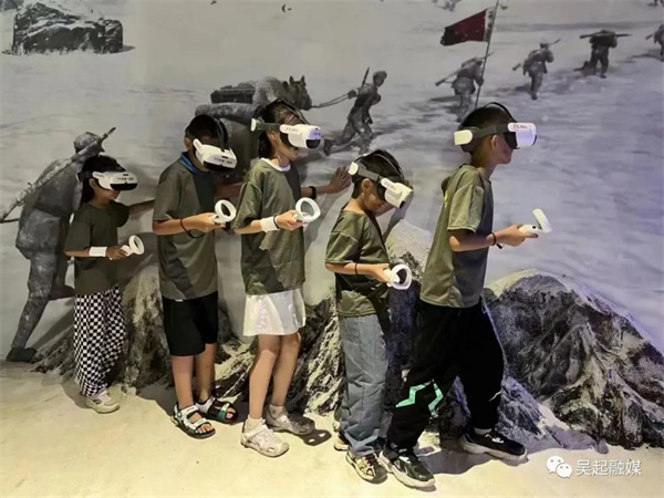 10月9日上午9點(diǎn),走進(jìn)吳起長(zhǎng)征1935數(shù)字空間看到,幾個(gè)學(xué)生正戴著VR眼鏡觀(guān)看長(zhǎng)征戰(zhàn)士爬雪山過(guò)草地的場(chǎng)景。