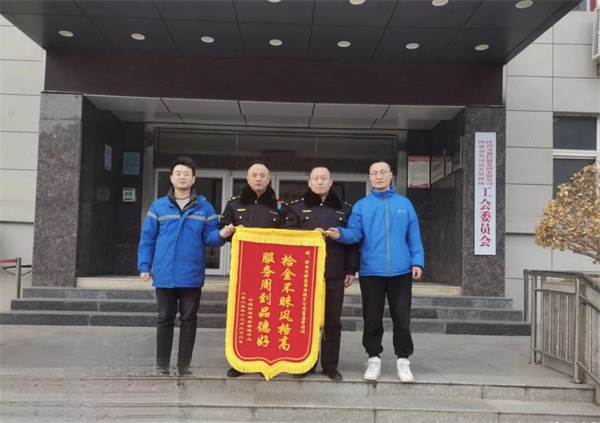 16時20分,延安市中通快遞公司區(qū)域負責(zé)人及遺失包裹司機送來一面寫有“拾金不昧風(fēng)格高,服務(wù)周到品德好”的錦旗。“真沒想到,丟失7000多元的貨物還能找回來,不然又要承擔(dān)近3倍的資費,賠償金額2萬余元,太感謝你們了。”負責(zé)人不停地道謝。