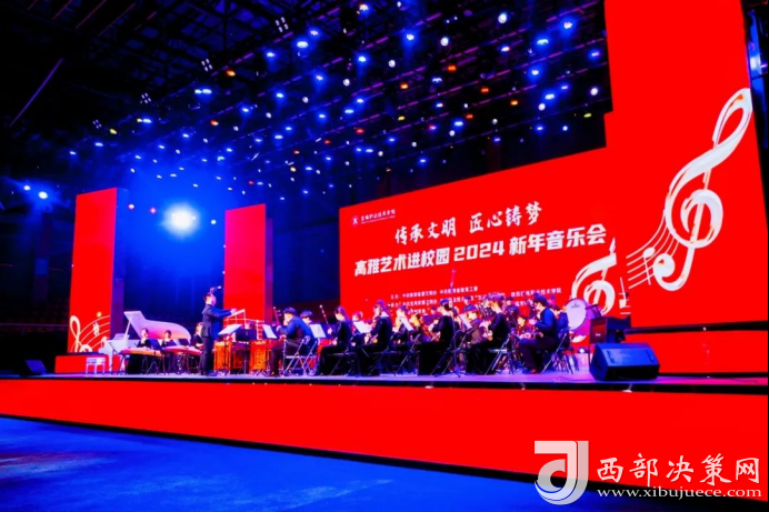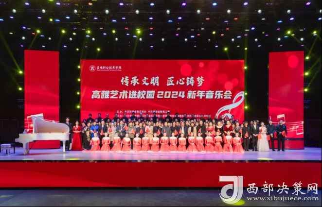 西部決策網(wǎng)訊 12月27日,“傳承文明 匠心鑄夢”高雅藝術進校園2024新年音樂會暨“文明之光 宅茲中國”校園非遺文化大集在寶雞職業(yè)技術學院文體中心隆重舉辦。陜西省委文明辦、陜西省教育工委宣傳部、寶雞文理學院、陜西機電職業(yè)技術學院、寶雞市委宣傳部、市委文明辦、市教育局、寶雞青銅器博物院、寶雞市特殊教育學校相關領導以及寶雞職業(yè)技術學院黨委書記蘇永興和在家領導出席活動。