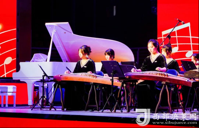 走進音樂殿堂,聆聽悠揚旋律,敞開動人心扉,種下新時代文明的“種子”。整場音樂會分為“國樂迎新年”“琴韻潤匠心”“弦歌啟新程”三個篇章,采用歌曲聯(lián)唱、情景表演唱、樂器演奏、歌舞等多種藝術形式,以音樂的方式,唱響文明風尚、展現(xiàn)人文風貌、歌唱時代心聲、闡釋最美情懷。參演院校師生和寶雞教師合唱團傾情演繹《長相知》《陽關三疊》《瑤族舞曲》《我和我的祖國》等經(jīng)典曲目,從婉轉(zhuǎn)歌喉到歡快勁舞,以青春風采點燃現(xiàn)場師生的熱情,將現(xiàn)場氛圍推向一個又一個高潮。最終,這場承載著大家美好新年祝愿的音樂會在經(jīng)久不息的掌聲中落下帷幕。