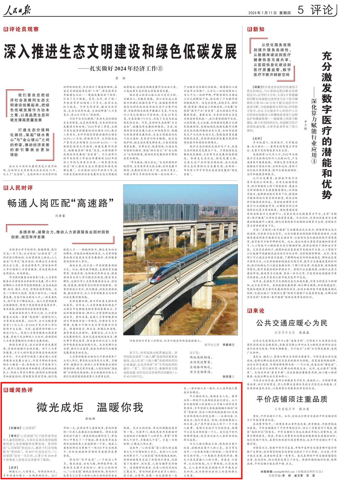 當凡人微光聚成火炬,照亮的是整個社會,溫暖的是每個人的心靈。在日常生活中,一句溫柔而暖心的話語,一段尋常而堅定的守候,一個果敢而勇毅的舉動,都足以迸發(fā)震撼人心的力量。存善念、行善舉,從此時做起,從小事做起,從你我做起,凡人善舉就能在潤物無聲中散發(fā)出光和熱,成為推動社會向上向善的強大正能量。