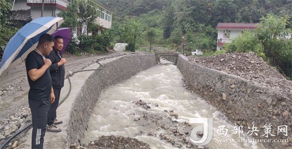 付貴超與同事參與防汛搶險巡察河堤安全隱患