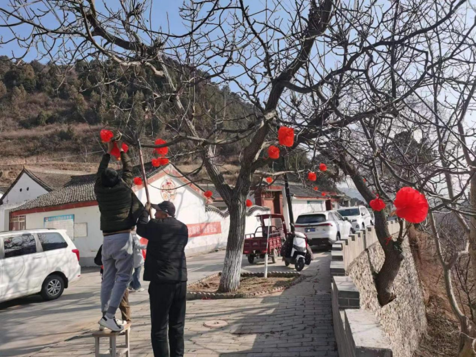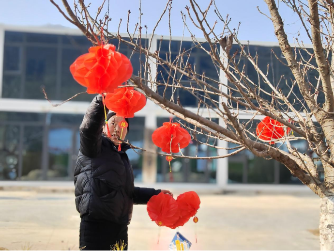 過新年掛燈籠是中國傳統(tǒng)習(xí)俗,象征著團(tuán)團(tuán)圓圓、紅紅火火。雖然當(dāng)下正值嚴(yán)寒時節(jié),但干部群眾一同掛燈籠的熱情卻很高漲,你扶梯子、我掛燈籠的熱鬧場景隨處可見。大家在相互密切配合下,一個個帶著新年祝福的紅燈籠掛滿了大街小巷,為全鄉(xiāng)村容村貌增色不少。“大紅燈籠掛起來,一下子就有年味啦,看起來真喜慶!”過往的村民高興地說到。