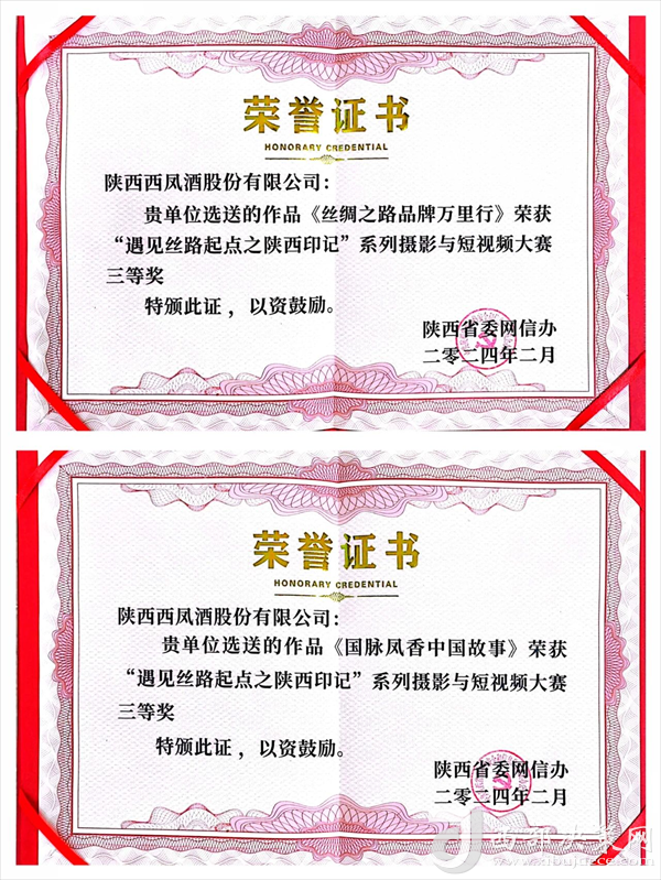 西部決策網(wǎng)訊(記者劉玉 韓宗憲 通訊員 雒文峰)2月4日,由陜西省委網(wǎng)信辦主辦,環(huán)球網(wǎng)承辦的“遇見絲路起點(diǎn)之陜西印記”系列攝影與短視頻大賽頒獎儀式在西安市東方大酒店隆重舉行。陜西省委網(wǎng)信辦副主任馬衛(wèi)東,環(huán)球網(wǎng)總經(jīng)理單成彪,大賽獲獎作品創(chuàng)作者及獲獎單位代表50余人出席頒獎儀式,西鳳股份公司榮獲大賽攝影與短視頻作品兩項(xiàng)大獎。