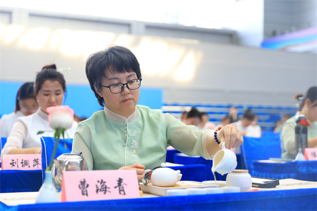 活動開始,12名女職工在悠揚(yáng)的古箏樂聲中展示了茶藝表演,示范了行禮入座、溫杯燙盞、賞茶投茶、浸潤搖香、洗茶沖泡、分杯奉茶,每一個步驟都頗具韻味,每一個環(huán)節(jié)都充滿儀式感,讓在場的每個人都充分感受到茶藝的魅力。