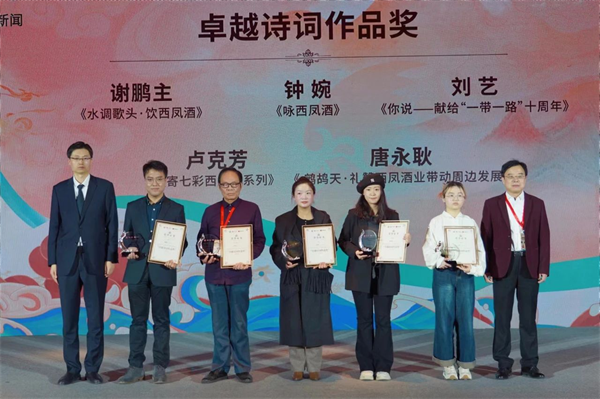 西部決策網(wǎng)訊(記者劉玉韓宗憲通訊員張?zhí)炝Ⅵ梦姆澹┰娋莆幕瑴嘏澜纭?月7日,以“詩酒飄香、悅享世界”為主題的“一帶一路”西鳳酒詩詞大會頒獎典禮在西安隆重舉行。中央電視臺原臺長,光明日報社原總編輯,第十屆中國文聯(lián)副主席胡占凡,著名作家、中國作家協(xié)會社聯(lián)部主任李曉東,中華詩詞學(xué)會常務(wù)副會長林峰,央視百家講壇主講人、鄭州大學(xué)文學(xué)院教授王士祥,中華詩詞學(xué)會評論部副主任,火箭軍工程大學(xué)原副校長杭中華,央視《中國詩詞大會》學(xué)術(shù)總負(fù)責(zé)人李定廣,中華詩詞學(xué)會顧問,陜西省詩詞學(xué)會會長孟建國,著名酒文化專家、山東社會科學(xué)院歷史所研究員王賽時,西北大學(xué)歷史學(xué)院副教授、中國文明史研究院研究員路中康。網(wǎng)易傳媒副總裁李淼,網(wǎng)易傳媒華北銷售中心副總經(jīng)理于洋。西鳳集團(tuán)公司黨委書記、董事長、股份公司董事長張正,西鳳股份公司總經(jīng)理張周虎,西鳳集團(tuán)公司黨委副書記、工會主席郭拴新,西鳳股份公司副總經(jīng)理周艷花、高亞蘭,西鳳酒股份有限公司總文化顧問高洪濤以及《人民日報》、新華社、新浪、網(wǎng)易、鳳凰網(wǎng)、《華爾街日報》、英國衛(wèi)報、中國經(jīng)營報、每日經(jīng)濟(jì)新聞、北京日報、陜西日報等50多家媒體代表,詩詞愛好者參加會議。新華直播、網(wǎng)易新聞、西鳳股份公眾號、抖音平臺對大會進(jìn)行了現(xiàn)場直播。