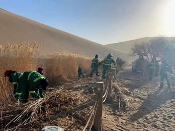 西部決策網訊(記者帥華鋒 通訊員 田雅杰)蘆葦作為守護鳴沙山月牙泉的生態(tài)“守衛(wèi)”,不僅為月牙泉沿岸增添了風景線,還具有凈化泉水水質的功能,春季蘆葦枯敗,易腐爛致泉水變臭、底泥淤積,造成環(huán)境污染,影響景區(qū)風貌。
