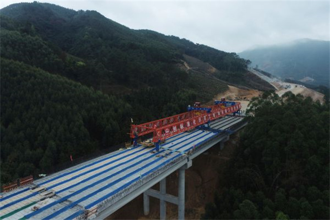西部決策網(wǎng)訊 3月22日,中鐵一局三公司賀州北過境線項目長慶互通跨線橋右幅T梁架設順利貫通。